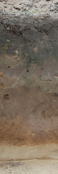 A soil horizon is a layer parallel to the soil surface, whose physical characteristics differ from the layers above and beneath. Each soil type has at least one, usually three or four horizons. Horizons are defined in most cases by obvious physical features, chiefly colour and texture. These may be described both in absolute terms (particle size distribution for texture, for instance) and in terms relative to the surrounding material, i.e. ‘coarser’ or ‘sandier’ than the horizons above and below.