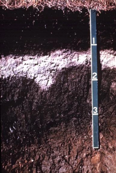 These horizons are also heavily organic, but are distinct from O horizons in that they form under waterlogged conditions. The “P” designation comes from their common name, peats. They may be divided into P1 and P2 in the same way as O Horizons. This layer accumulates iron, clay, aluminium and organic compounds, a process referred to as illuviation.